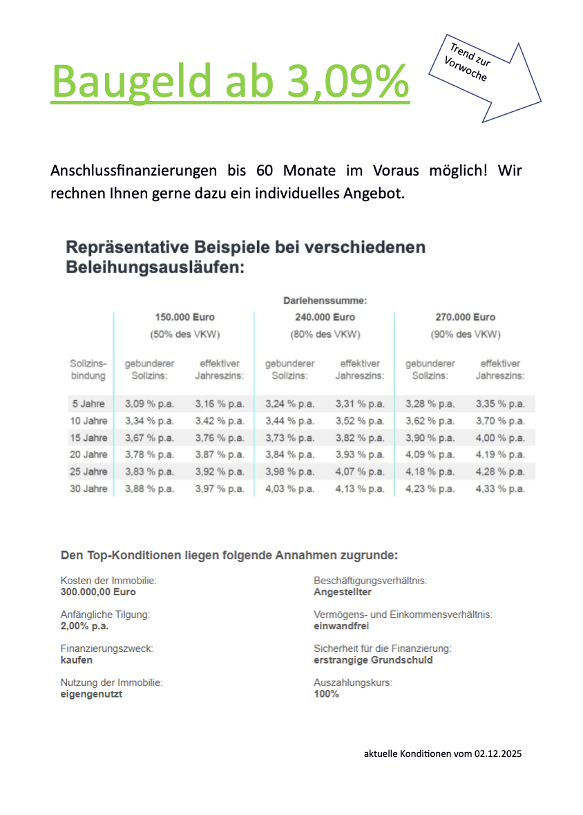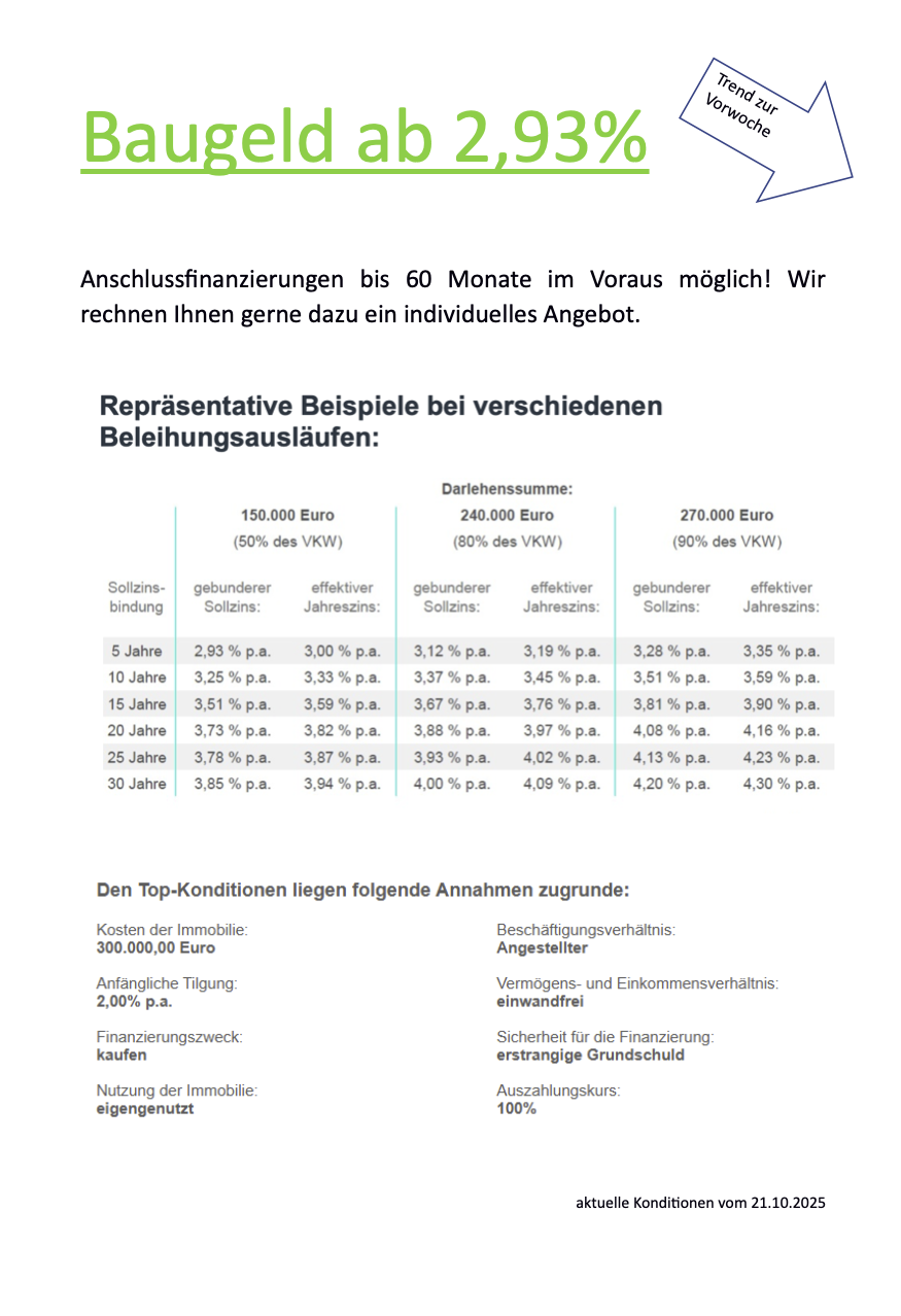 Auf dieser Seite können Sie sich jede Woche über die aktuellen Zinskonditionen informieren.