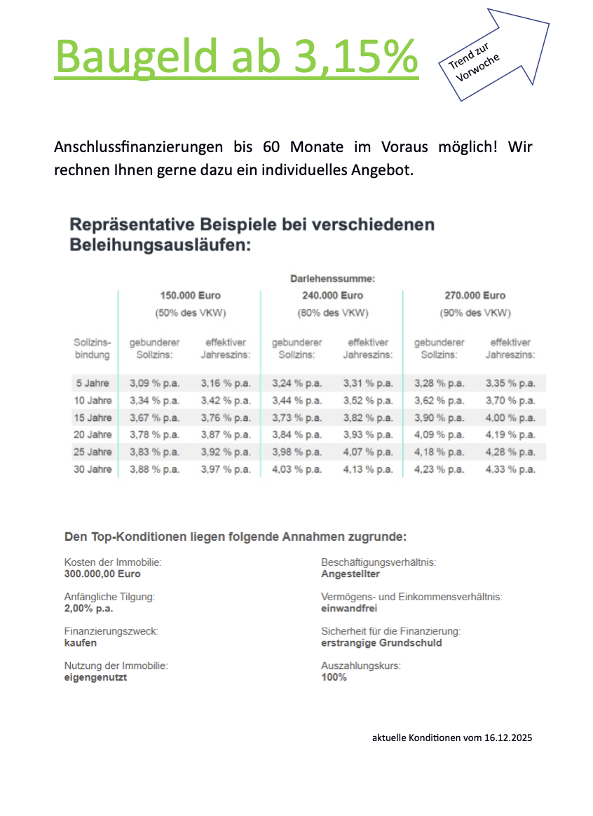 Auf dieser Seite können Sie sich jede Woche über die aktuellen Zinskonditionen informieren.